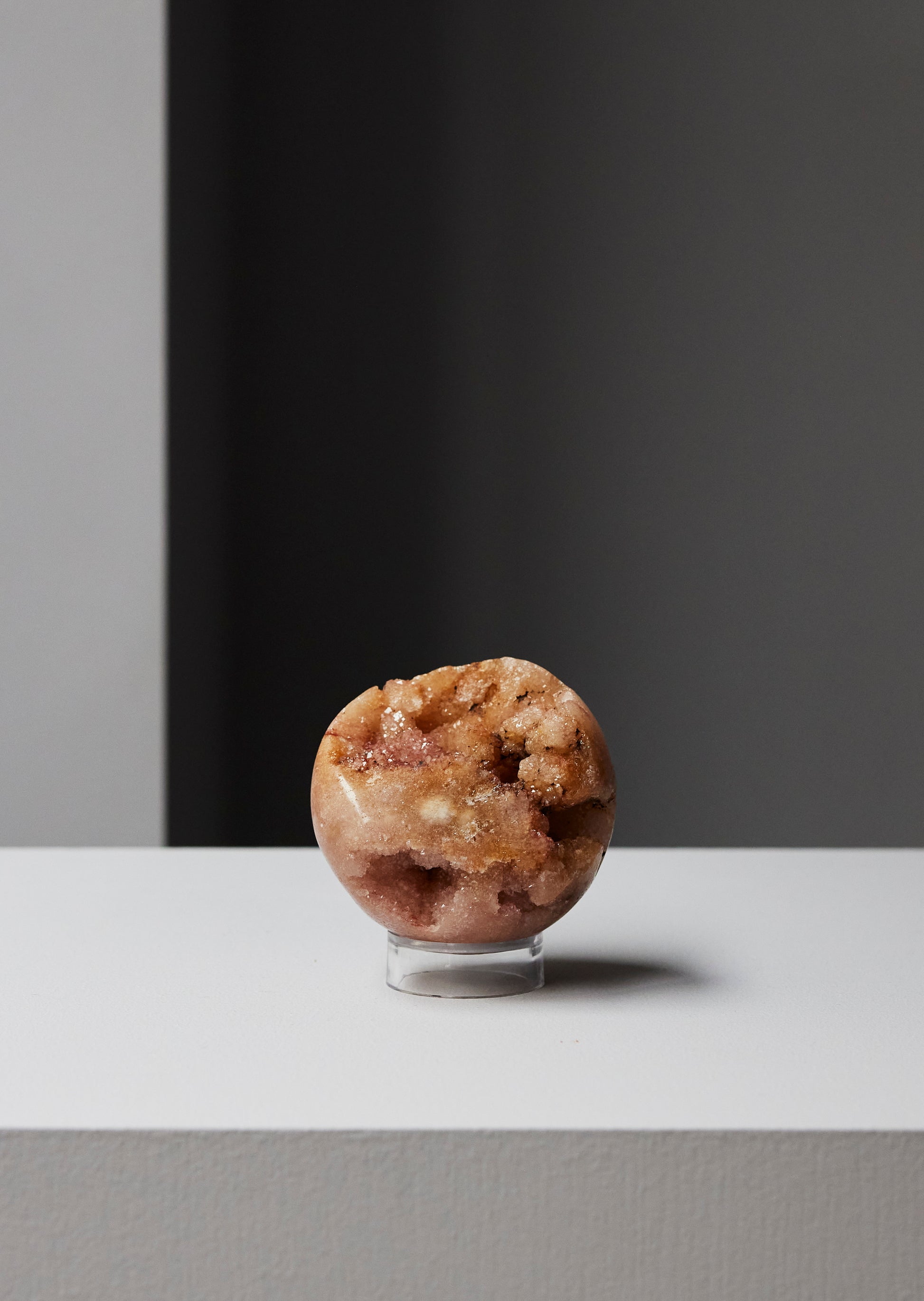 Sfera in Amestista Rosa con drusa scintillante, un oggetto brillante che può illuminare la casa con la sua energia calda e rassicurante. L'Ametista Rosa è una pietra dalla vibrazione particolarissima che unisce il chakra del Cuore con il chakra della Corona. Il caratteristico color rosa pesca ci fa sentire amati, accolti e sostenuti. Invece, l'alta frequenza della struttura cristallina dell' Ametista spinge questo sentimento verso l'alto, verso l'Universo, verso una dimensione superiore. Il messaggio è che l'Universo ci ama sempre, in ogni momento e in ogni caso. Questo amore è la ragione di tutte le cose e niente e nessuno potrà mai togliercelo.